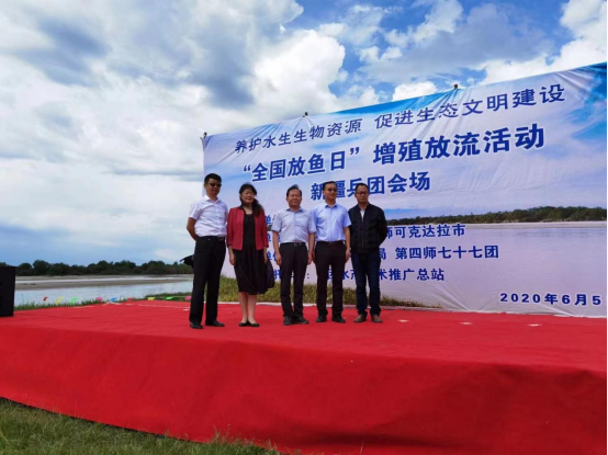 塔里木大学校领导在特克斯河段参加“全国放鱼日”活动