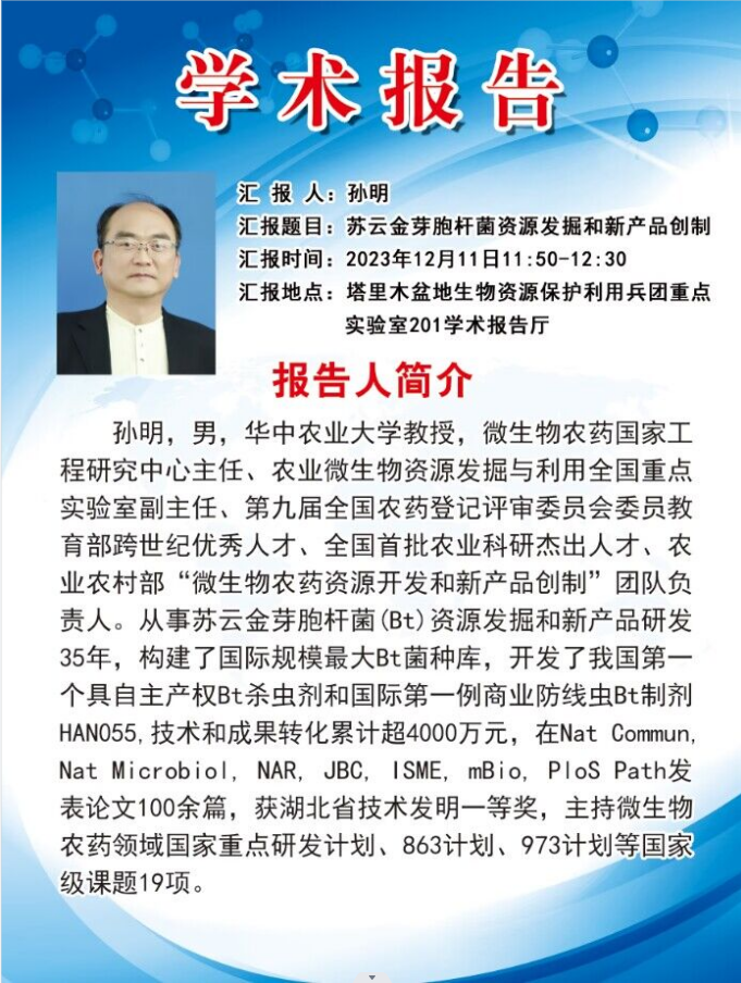 “名师进实验室”系列讲座---华中农业大学大学孙明教授-苏云金芽胞杆菌资源发掘和新产品创制