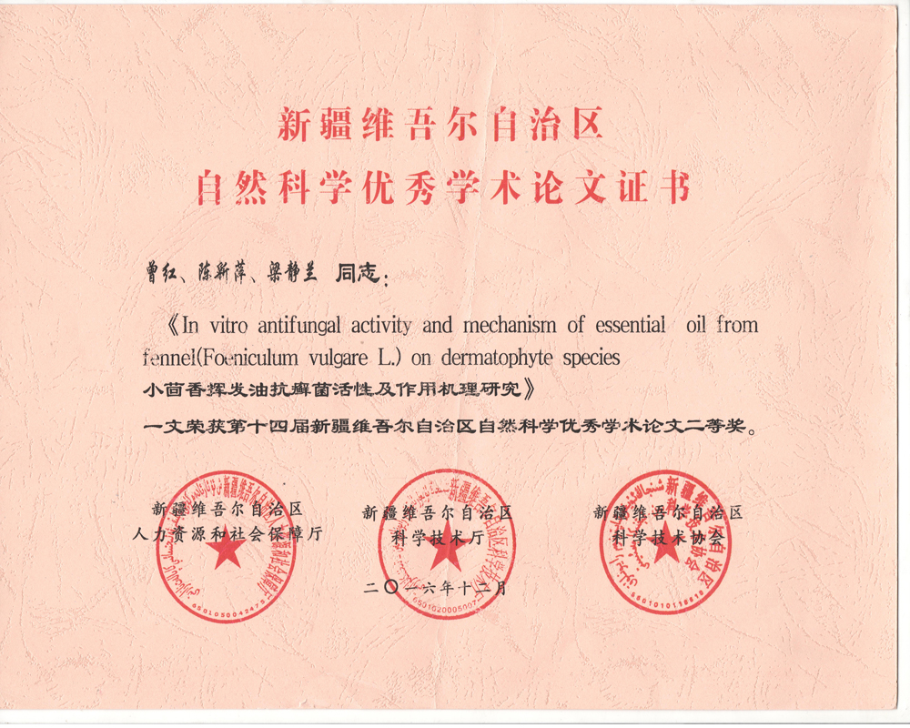 国家林草局梁希林业科技进步奖-小茴香挥发油抗癣菌活性及其作用机理