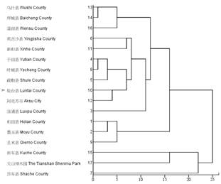 17个采样点间平方欧氏距离的组间联结聚类图