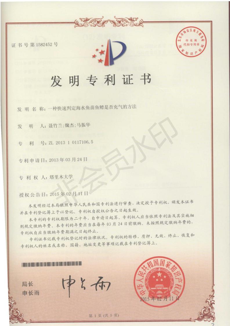 实用新型专利-一种快速判定海水鱼苗鱼鳔是否充气的方法