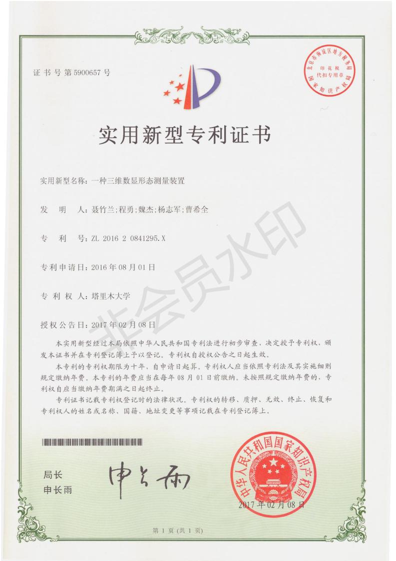 实用新型专利-一种三维数显形态测量装置