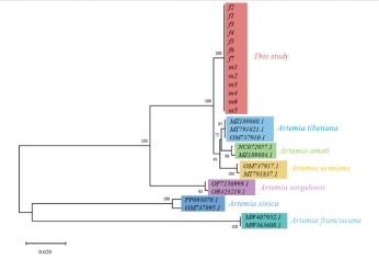 基于条形码基因的亚洲卤虫属物种系统发育树