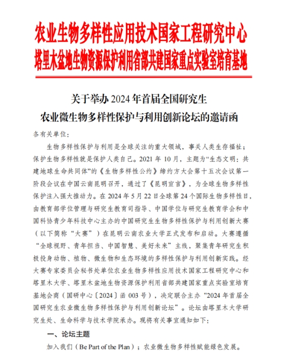 关于举办 2024 年首届全国研究生农业微生物多样性保护与利用创新论坛的邀请函